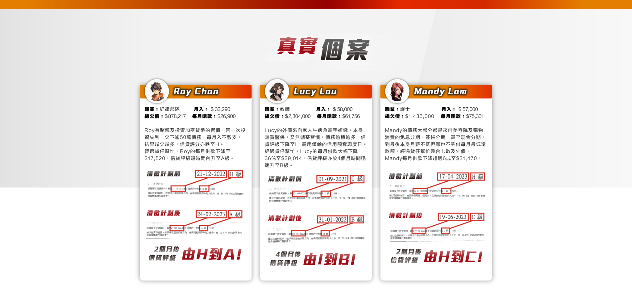 我們提供專業可靠的二線清數服務,幫助你脫離債務的困擾。我們的方案經理團隊將根據你具體的個人情況和需求,設計出最適合你的清數方案,讓你的還款壓力減輕,重拾生活。二線清數專家,幫助您重拾財務自由。